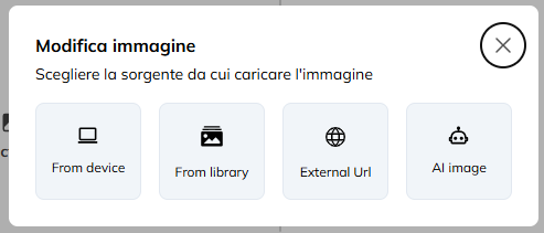 Potrete anche caricarne una da un URL esterno o crearne una con l’utilizzo dell’intelligenza Artificiale.